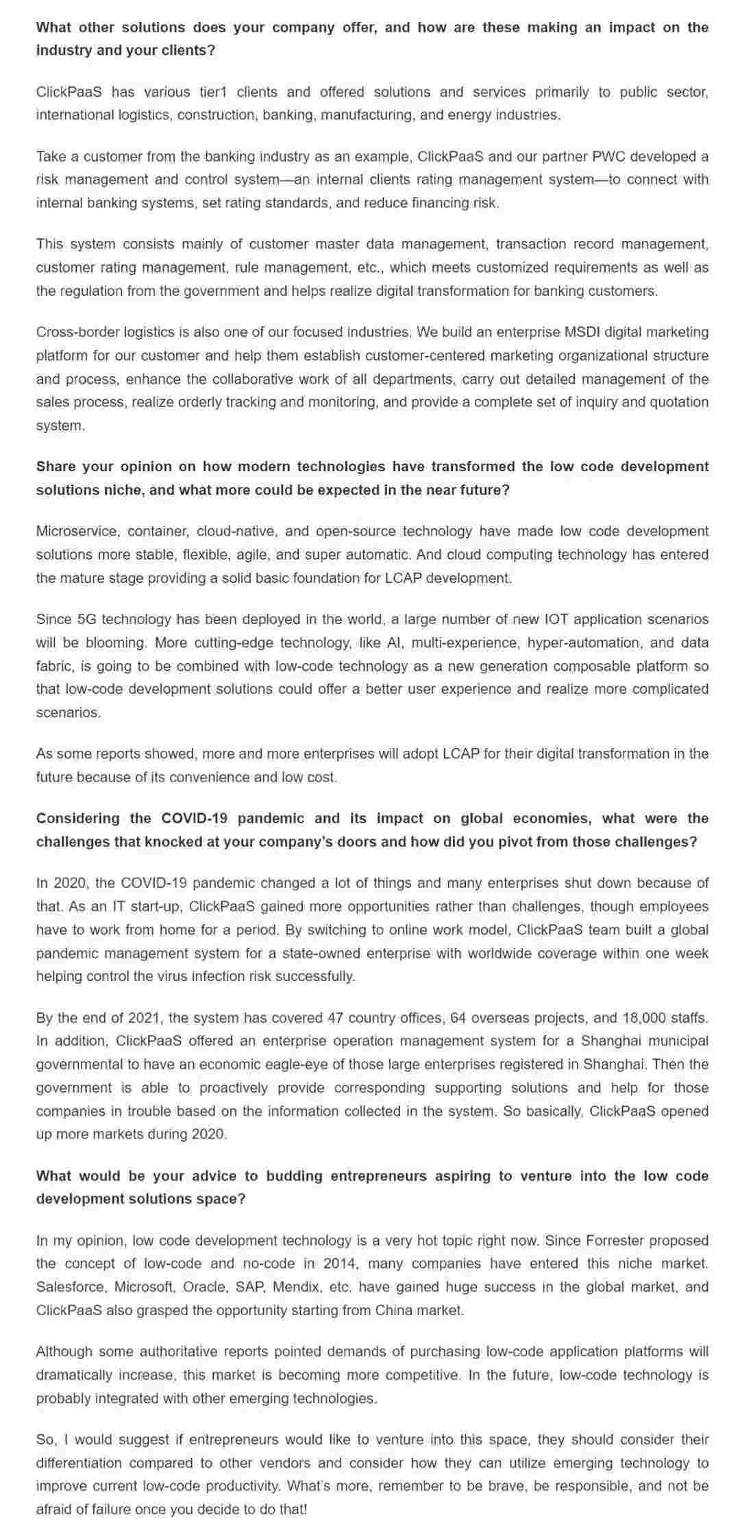 2022年年初,,,,美团钱包商家版入选外媒Insights Success低代码/无代码开发平台 Top10,,,,创始人、、、、CEO胡柏受邀接受专访并荣登封面人物,,,,他与Insights Success的读者分享了美团钱包商家版成立的初心、、、发展历程、、当前的行业发展趋势以及他对公司未来的展望。。