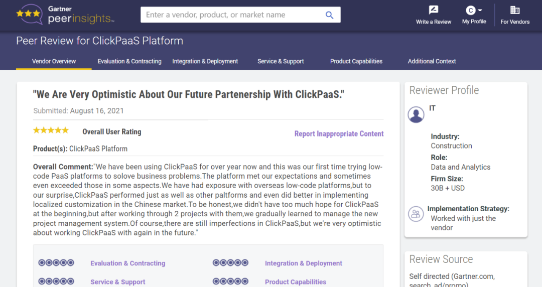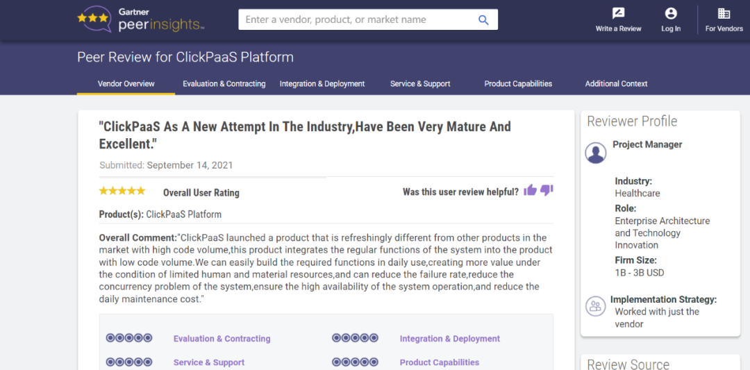 Tips::::【Peer Insights】——用户对企业IT产品和服务发布真实评价的平台。。。目前已有355个市场,,,,255,000条经过验证的评价。。。。每一条评价Gartner会针对参评企业营收规模及参评人员信息做验证、、、、评价内容做多维核实。。
